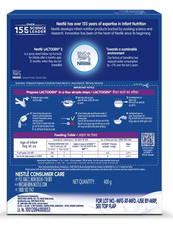 Nestle LACTOGEN 2 Follow-Up Formula Powder - After 6 months, Stage 2, 400g Bag-in-Box Pack